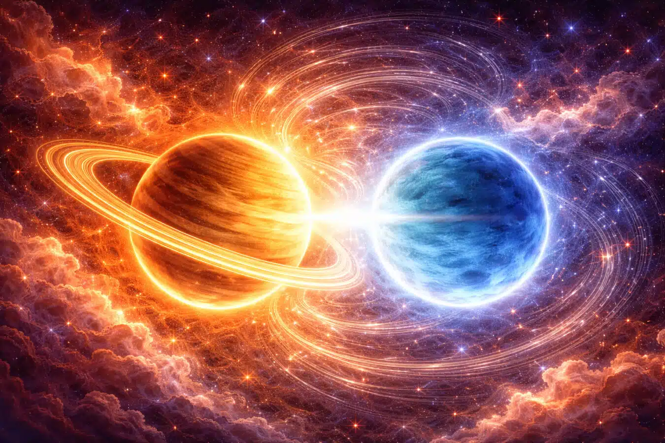 20 lutego 2026 o 17:54 (czas w Polsce) Saturn i Neptun spotykają się w koniunkcji w Baranie, dokładnie na 0,8°. To jest bardzo „początkowy” punkt znaku: energia startu, „ja jestem”, impuls do działania, do decyzji, do odważnego postawienia się w swoim życiu. A jednocześnie… spotkanie planet, które lubią grać w skrajnościach.