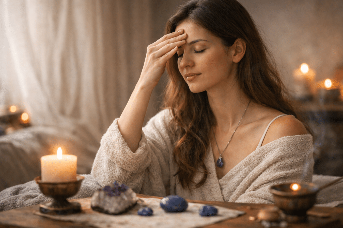 Czakra trzeciego oka - Ajna - w soft duchowości to wewnętrzna jasność, która wraca, gdy robisz jej miejsce. Gdy w głowie robi się głośno i mętnie, zwykle nie potrzebujesz kolejnej analizy, tylko mniej bodźców i więcej spokoju: rozluźnienia czoła, dłuższego wydechu, chwili ciszy, prostego rytuału. Kamienie mogą stać się kotwicą intencji, a świeca i krótkie pisanie pomagają zatrzymać uwagę tam, gdzie zaczyna się prawda. Intuicja nie musi krzyczeć, żeby prowadzić - czasem wystarczy, że przestajesz ją zagłuszać.