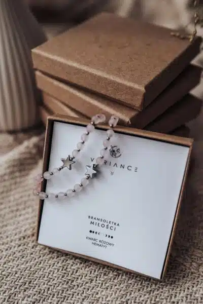 Bransoletka ozdobiona jest elegancką srebrną zawieszką w kształcie gwiazdki, wykonanej z Hematytu, która zapewnia trwałość i piękny blask. Jest doskonałym dodatkiem zarówno na co dzień, jak i na wyjątkowe okazje, a także energetycznym wsparciem dla osób spod znaku Byka i tych, którzy pragną wprowadzić miłość i harmonię do swojego życia.