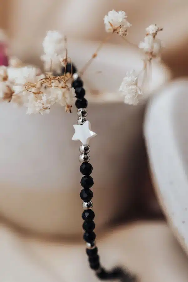Bransoletka Uziemienia i Równowagi to wyjątkowa biżuteria stworzona z Czarnego Turmalinu. Czarny Turmalin, znany z potężnych właściwości oczyszczających, chroni przed negatywnymi energiami, ugruntowuje duchową energię i pomaga w utrzymaniu wewnętrznego spokoju. W połączeniu z delikatną Masą Perłową, które symbolizują czystość i duchowe piękno, bransoletka ta staje się wyjątkowym narzędziem do osiągnięcia harmonii i równowagi.