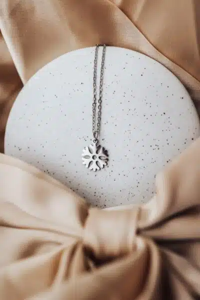 Zawieszka w kształcie śnieżynki to centralny element naszyjnika. Symbolizuje ona wyjątkowość każdego człowieka, czystość intencji oraz harmonię natury. Śnieżynka, która nigdy nie powtarza swojego wzoru, przypomina, że każdy z nas jest jedyny w swoim rodzaju, a harmonia płynie z akceptacji własnej unikalności.