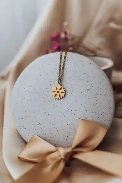 Zawieszka w kształcie śnieżynki to centralny element naszyjnika. Symbolizuje ona wyjątkowość każdego człowieka, czystość intencji oraz harmonię natury. Śnieżynka, która nigdy nie powtarza swojego wzoru, przypomina, że każdy z nas jest jedyny w swoim rodzaju, a harmonia płynie z akceptacji własnej unikalności.
