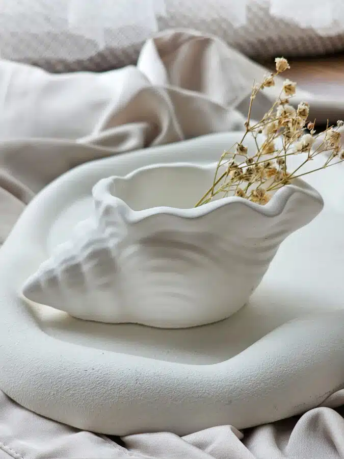Podstawka Muszla Energii Oceanu to wyjątkowy, ręcznie wykonany produkt, który łączy w sobie elegancję i siłę natury. Wykonana z gipsu polimerowego w kolorze czystej bieli, ta podstawka w kształcie muszli symbolizuje potęgę i dynamikę morskiej energii. Jej forma przywodzi na myśl spokojne fale oceanu, które przynoszą zarówno ukojenie, jak i inspirację.