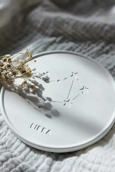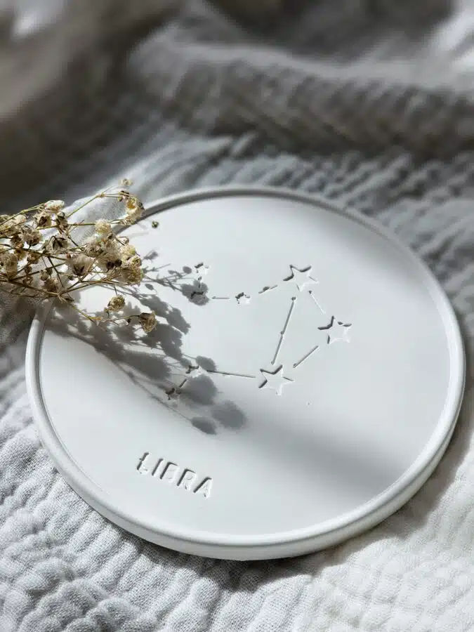Wytłoczona konstelacja Wagi na powierzchni podstawki nadaje jej niepowtarzalny charakter, czyniąc ją nie tylko estetycznym, ale i duchowym elementem Twojej przestrzeni. Idealna do przechowywania świec, kadzideł, biżuterii lub innych drobiazgów, ta podstawka wspiera harmonię i równowagę w codziennym życiu.