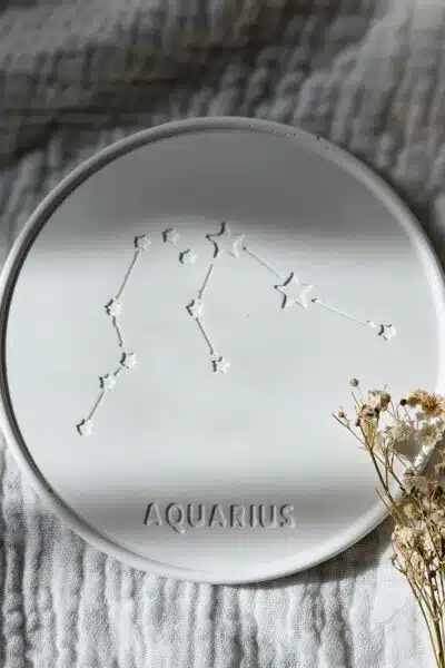 Konstelacja Wodnika, wytłoczona na powierzchni podstawki, nadaje jej wyjątkowy charakter, czyniąc ją nie tylko praktycznym, ale i duchowym elementem Twojego wnętrza. Idealna do przechowywania świec, kadzideł, biżuterii lub innych drobiazgów, ta podstawka wspiera oryginalność i ducha wolności w codziennym życiu.